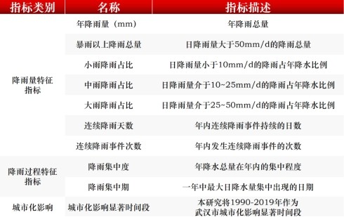 綜合考慮降雨量、降雨過程、城市化影響等因素,課題組構(gòu)建了一套多維度的降雨特征指標(biāo)體系,在武漢及其他長江中下游地區(qū)平原型城市中具有較好的適用性。