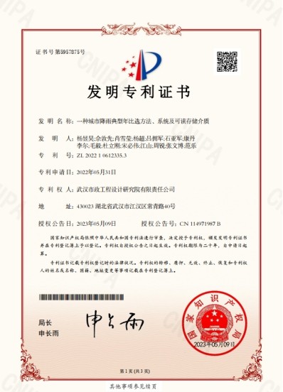 最終,項(xiàng)目組梳理了降雨典型年比選的方法,并申報(bào)獲批了國家發(fā)明專利。