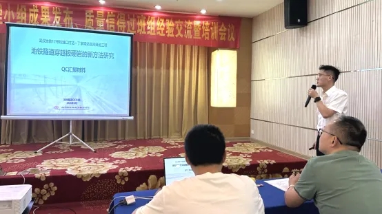 武漢市政院“拾光隧道QC小組”組員龍凡對“地鐵隧道穿越極硬巖的新方案研究”課題進行了成果發(fā)布。“拾光隧道QC小組”為解決地鐵隧道穿越極硬巖傳統(tǒng)方法安全難以保證、工作效率較低等痛點問題,研發(fā)了一種地鐵隧道穿越極硬巖的全新技術(shù)方案,攻克了復(fù)雜地質(zhì)和敏感環(huán)境兩大難題。該研究成果在“武漢地鐵12號線港口村站~丁家咀站區(qū)間隧道工程”中,實現(xiàn)盾構(gòu)穿越極硬巖深孔爆破預(yù)處理在武漢軌道交通地下區(qū)間的首次應(yīng)用。“拾光隧道QC小組”對該創(chuàng)新成果進行了標準化建設(shè),形成了通用設(shè)計圖和成套技術(shù)方案,現(xiàn)已在全公司推廣應(yīng)用。