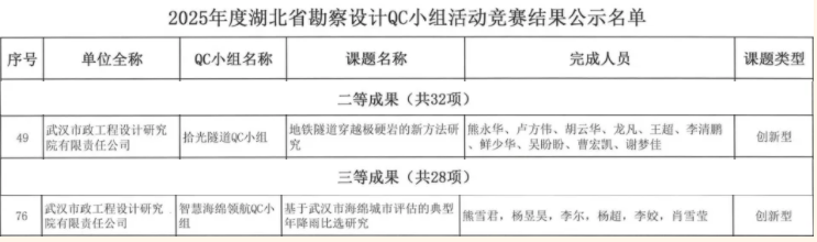 武漢市政院再傳捷報(bào)!近日,湖北省勘察設(shè)計(jì)協(xié)會(huì)組織召開(kāi)的“2025 年度湖北省勘察設(shè)計(jì)QC小組活動(dòng)競(jìng)賽”中,武漢市政院選送的兩個(gè)QC小組表現(xiàn)亮眼:地空事業(yè)部"拾光隧道QC小組"憑借創(chuàng)新成果斬獲競(jìng)賽二等獎(jiǎng),規(guī)劃研究事業(yè)部"智慧海綿領(lǐng)航QC小組"榮獲三等獎(jiǎng)佳績(jī)。