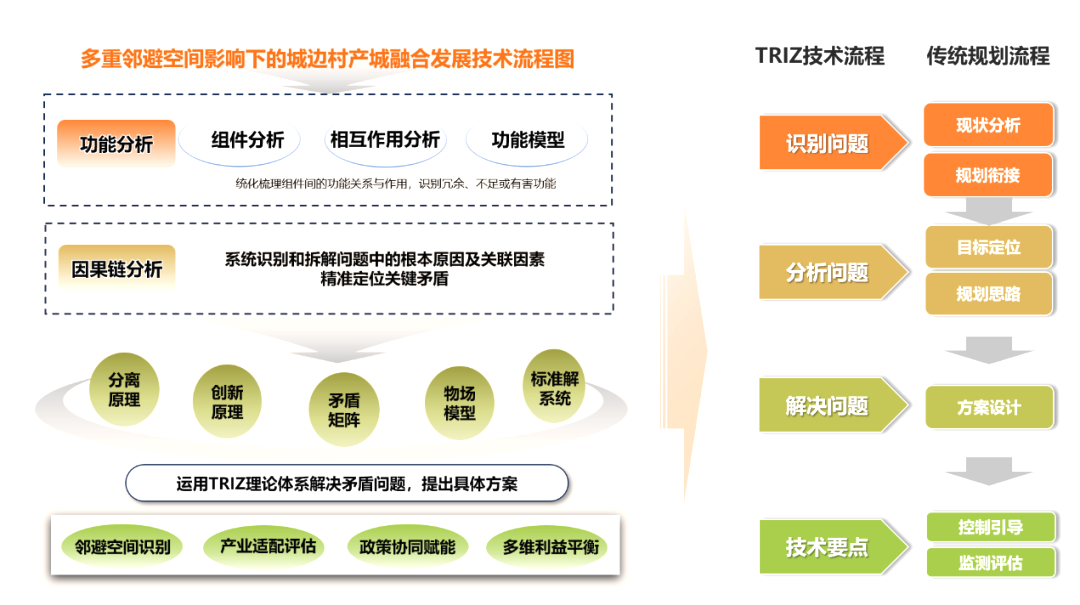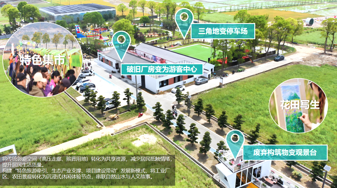 “基于TRIZ創(chuàng)新理論的一種多重鄰避空間影響下的城邊村產(chǎn)城融合發(fā)展規(guī)劃技術(shù)”項目基于寧波北侖新碶街道村莊規(guī)劃編制實踐,對城邊村產(chǎn)城融合發(fā)展的深層矛盾進(jìn)行科學(xué)拆解,精準(zhǔn)識別出“空間排他、物理割裂、功能受限、發(fā)展制約”四大關(guān)鍵矛盾。項目提出的“化鄰避為鄰利”技術(shù)方案,有效應(yīng)對土地供需不平衡、資源保護(hù)利用不協(xié)調(diào)等問題,提出“破解約束、產(chǎn)業(yè)升級、植入IP”的產(chǎn)業(yè)發(fā)展路徑,成功解決多重鄰避空間制約下的規(guī)劃發(fā)展難題,為新碶街道量身擘畫了“碶彩稻田”鄉(xiāng)村振興推進(jìn)示范區(qū)和“稻田+”都市田園鄉(xiāng)村示范區(qū)的規(guī)劃藍(lán)圖。