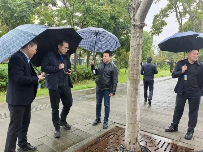 在紅鋼城大街,考察組對(duì)工業(yè)風(fēng)街道家具、銹蝕鋼板打造的特色樹穴蓋板與路緣石、以及公交站臺(tái)無障礙設(shè)施及帶狀排水溝的人性化設(shè)計(jì)高度肯定;來到和平大道,考察組對(duì)特色路緣石、造型路燈與林蔭綠化充分贊賞,強(qiáng)調(diào)街道設(shè)施需與周邊環(huán)境深度融合;在新建成的右岸大道南延段,考察組肯定道路鋪裝、檢查井、雨水口的建設(shè)品質(zhì),著重強(qiáng)調(diào)精細(xì)化施工對(duì)工程質(zhì)量的關(guān)鍵作用;走進(jìn)中山大道,考察組對(duì) “公交優(yōu)先、還綠于民” 的建設(shè)理念高度認(rèn)同,指出武漢與雄安在街道空間一體化設(shè)計(jì)領(lǐng)域有諸多共通點(diǎn),具備廣闊的互學(xué)互鑒空間。考察全程,武漢市政院團(tuán)隊(duì)詳細(xì)介紹了各項(xiàng)目的設(shè)計(jì)思路與建設(shè)歷程。