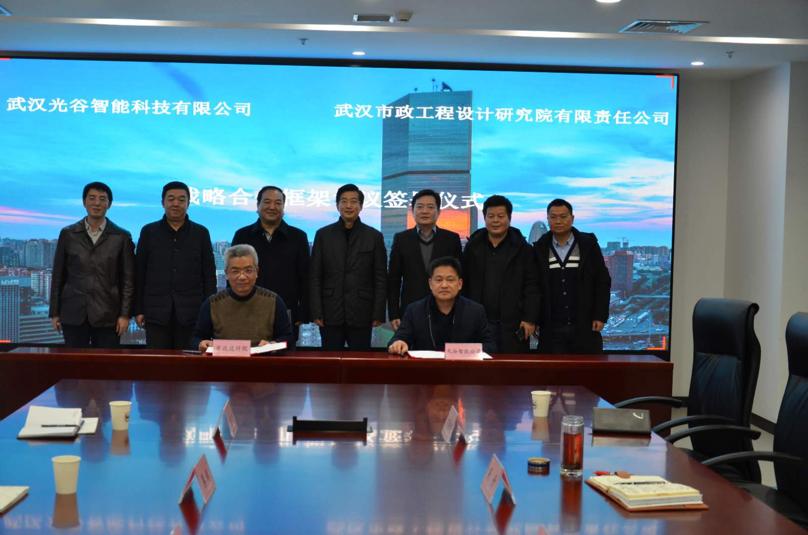 ??? 1月23日下午,公司與光谷智能公司簽訂戰(zhàn)略合作框架協(xié)議,雙方將依托各自優(yōu)勢資源,在智慧城市建設(shè)等多領(lǐng)域展開深度合作,實現(xiàn)利益共贏。市城投集團公司董事鄧耀光、光谷智能公司董事長吳丹、市場總監(jiān)李遠(yuǎn)專、公司董事長武興治、黨委書記蔡輝、副總經(jīng)理周俊、城市建設(shè)研究中心副主任黃俊等出席了簽約儀式。