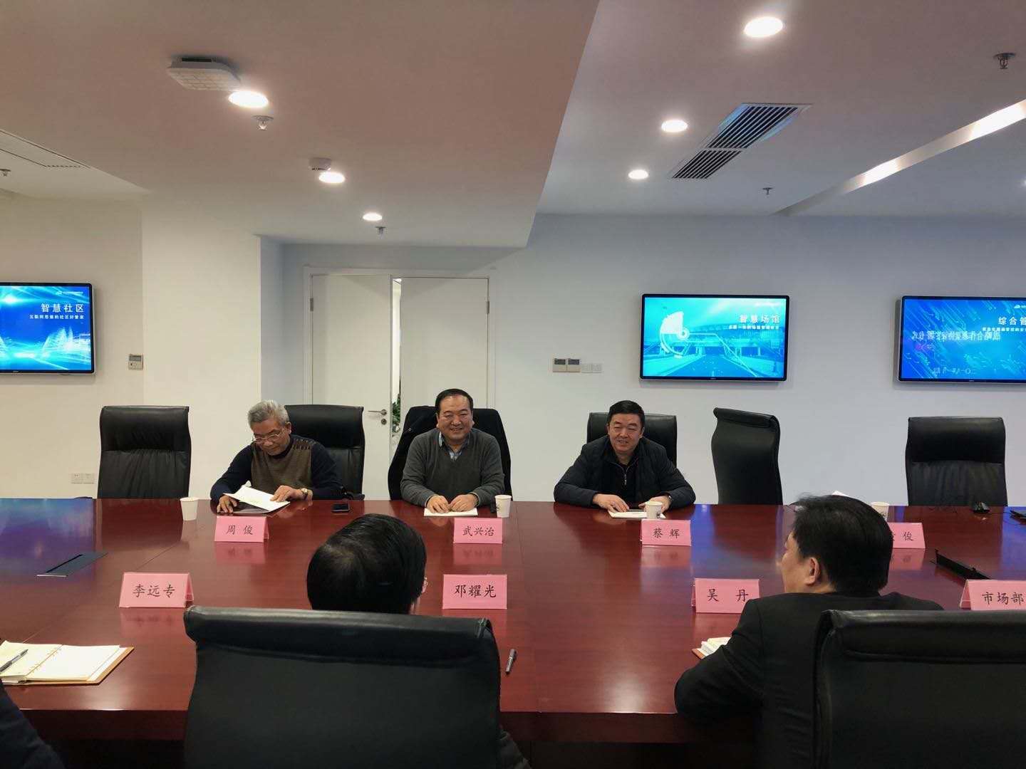 ??? 會前,雙方進行了簡短的會談。公司董事長武興治和光谷智能公司董事長吳丹分別介紹了各自企業(yè)的基本情況,并對雙方戰(zhàn)略合作的前景進行了展望。
