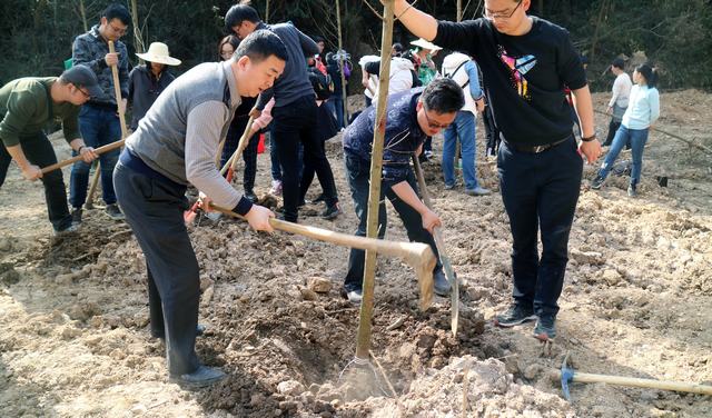 蔡輝為活動(dòng)致辭,他肯定了此次植樹(shù)拓展活動(dòng)的重要意義,希望大家在工作生活之余不要忘記承擔(dān)社會(huì)責(zé)任,并勉勵(lì)大家要在公司轉(zhuǎn)型發(fā)展時(shí)期展現(xiàn)出更加飽滿和積極向上的精神面貌。隨后,志愿者們拿起鋤頭、鐵鍬、水桶,在工作人員的指導(dǎo)下挖坑、植樹(shù)、培土、澆水、固定,將一棵棵樹(shù)苗植入土里。大家熱情高漲,你挖我栽,互相配合,30余棵樹(shù)苗已經(jīng)栽種完畢。大家合力豎立起“武漢市政工程設(shè)計(jì)院愛(ài)綠護(hù)綠植樹(shù)林”標(biāo)識(shí)牌,并與之合影留念。