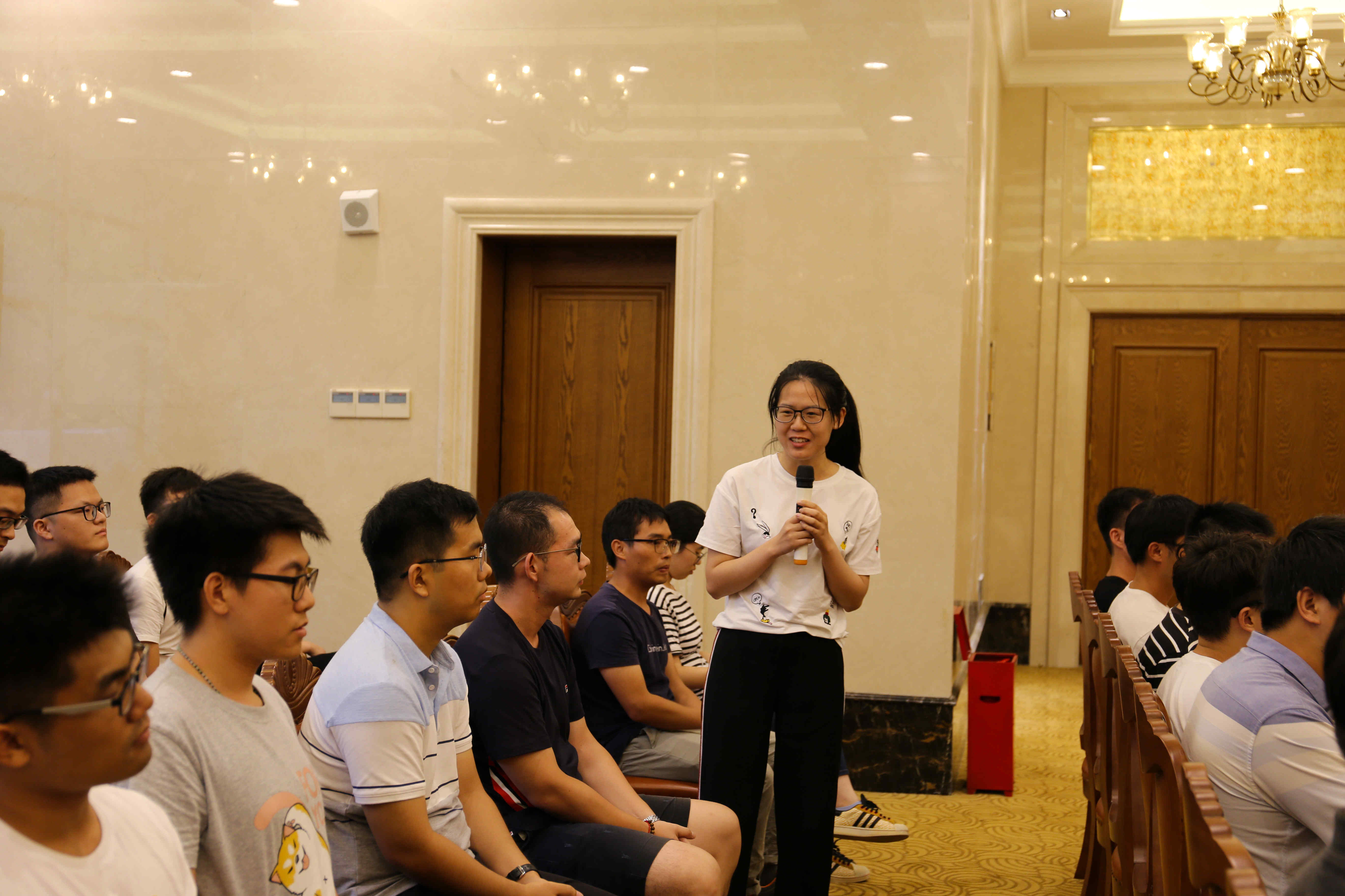 到達(dá)駐地簡(jiǎn)單休整后,歡迎晚會(huì)便拉開(kāi)帷幕了。所有參訓(xùn)人員做了熱情洋溢的自我介紹,并表達(dá)了對(duì)新環(huán)境、新同事的認(rèn)知和感受。姚華對(duì)大家表示了熱烈歡迎,并談到對(duì)大家未來(lái)的期望,重點(diǎn)在于“四個(gè)珍惜”,不僅要珍惜公司這一平臺(tái)、這一份工作,也要珍惜自己的身體與和同事之間的友誼,贏得了現(xiàn)場(chǎng)的陣陣掌聲。隨后,大家各顯其能,展露自己在文藝方面的特長(zhǎng),為大家奉獻(xiàn)了精彩的文藝表演,將晚會(huì)氣氛推向高潮。