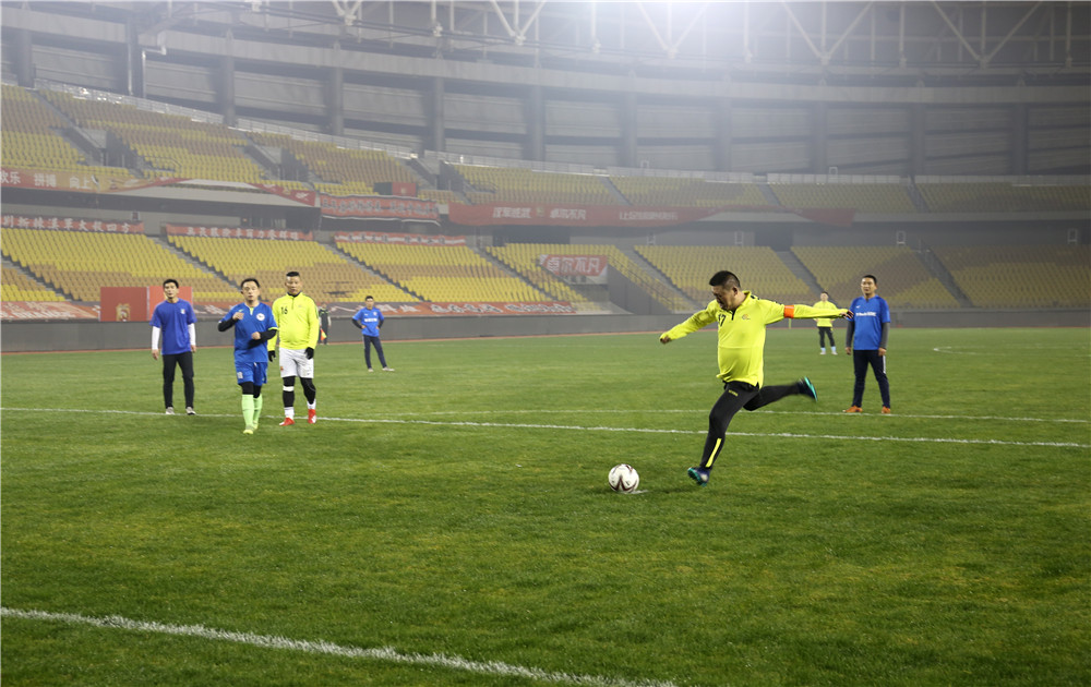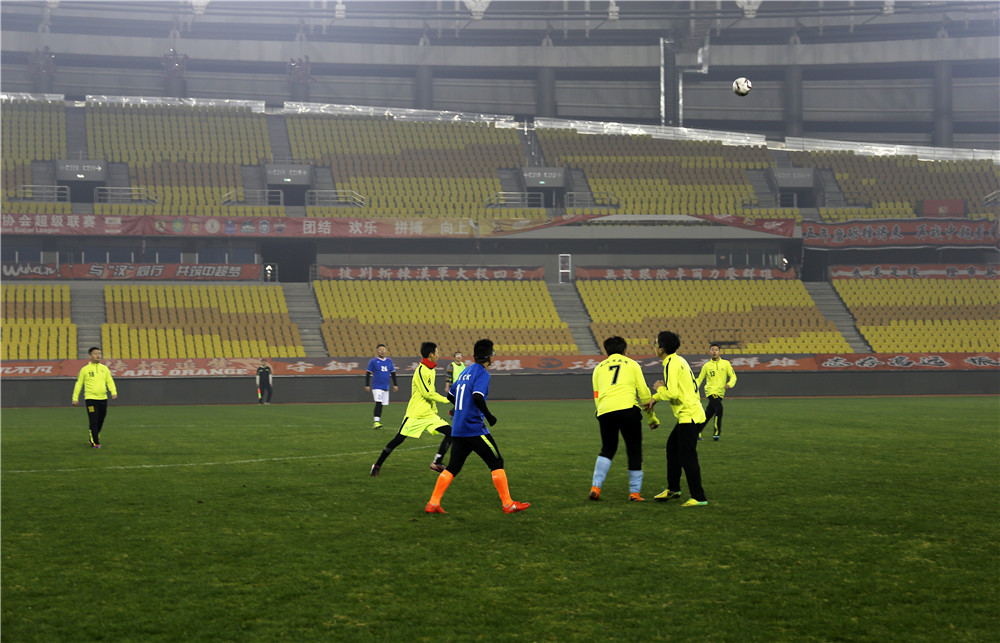 五環(huán)體育中心是武漢市為舉辦第七屆世界軍人運動會新建的規(guī)模最大的比賽場館,曾承擔了軍運會足球、乒乓球、水上救生等項目的比賽。盡管軍運會已經(jīng)過去近三個月了,但如今置身其中,仍然能感受到軍運賽事帶來的澎湃與激情?;蛟S這種情緒也感染著場上的隊員們,他們從一開始就迅速進入了比賽狀態(tài),身穿藍色球衣的東西湖區(qū)聯(lián)隊在開場不久便率先破門攻入一球,但公司的隊員們?nèi)匀环€(wěn)扎穩(wěn)打,很快就將比分扳平。重回同一起跑線的兩隊在隨后的比賽中更是你來我往,展開了高質(zhì)量的攻防大戰(zhàn),比分交替領(lǐng)先,最終雙方又各進四球,在一場精彩的進球大戰(zhàn)后以5:5的比分握手言和。