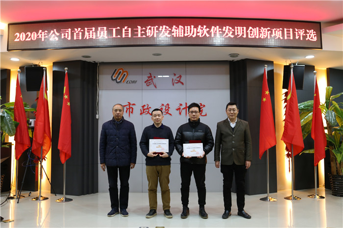經(jīng)過精彩的匯報和評委們的認真評價,來自交通研究院張燦的《武漢市政規(guī)劃設計平臺》和來自荊門分公司劉盾的《CAD輔助設計軟件》獲得了本次比賽的一等獎,二、三等獎也各有歸屬,公司領導為獲獎項目頒獎,并與軟件開發(fā)者合影留念。