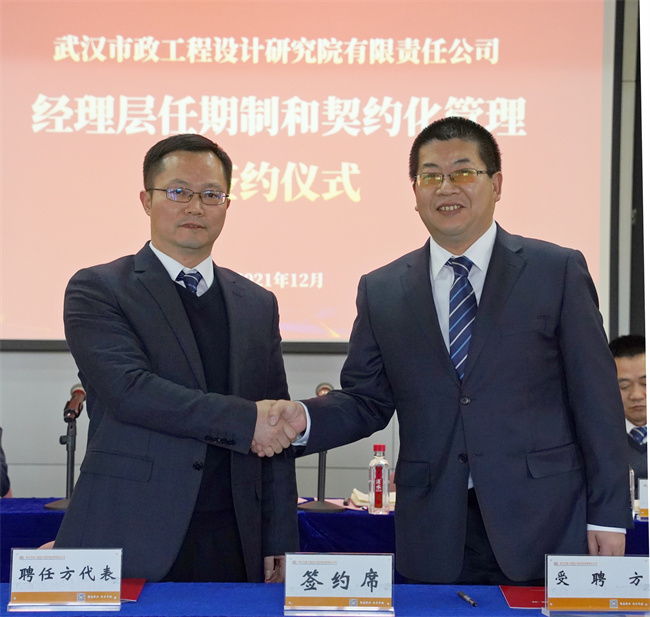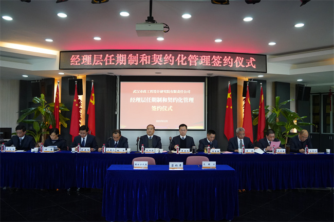 為貫徹落實(shí)黨中央、國(guó)務(wù)院關(guān)于實(shí)施國(guó)企改革三年行動(dòng)的重大決策部署,落實(shí)市城投集團(tuán)公司關(guān)于加快推進(jìn)所屬企業(yè)經(jīng)理層任期制和契約化管理的工作要求,12月20日下午,武漢市政設(shè)計(jì)院成功舉行公司及所屬企業(yè)經(jīng)理層任期制和契約化管理簽約儀式,標(biāo)志著武漢市政設(shè)計(jì)院在切實(shí)抓好國(guó)企改革三年行動(dòng)和三項(xiàng)制度改革工作中邁出關(guān)鍵一步。公司領(lǐng)導(dǎo)、總經(jīng)理助理、中層副職以上行政管理人員參加簽約儀式。