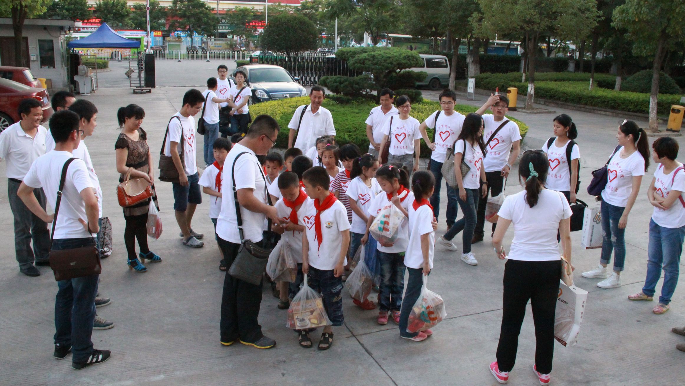 ??? 晚餐結(jié)束后,志愿者們與孩子們手拉手走出公司大門。志愿者隊(duì)長向李集小學(xué)領(lǐng)導(dǎo)贈(zèng)送了文體用品,隊(duì)員們也為孩子們送上早已準(zhǔn)備好的食品及小禮物,并送他們上車。告別的瞬間,隊(duì)員們向車上的孩子們揮手告別,目送車輛遠(yuǎn)去,車上的孩子們也揮動(dòng)著自己的小手,向公司志愿者們致意,為這次充實(shí)而難忘的活動(dòng)畫上了圓滿的句號(hào)。