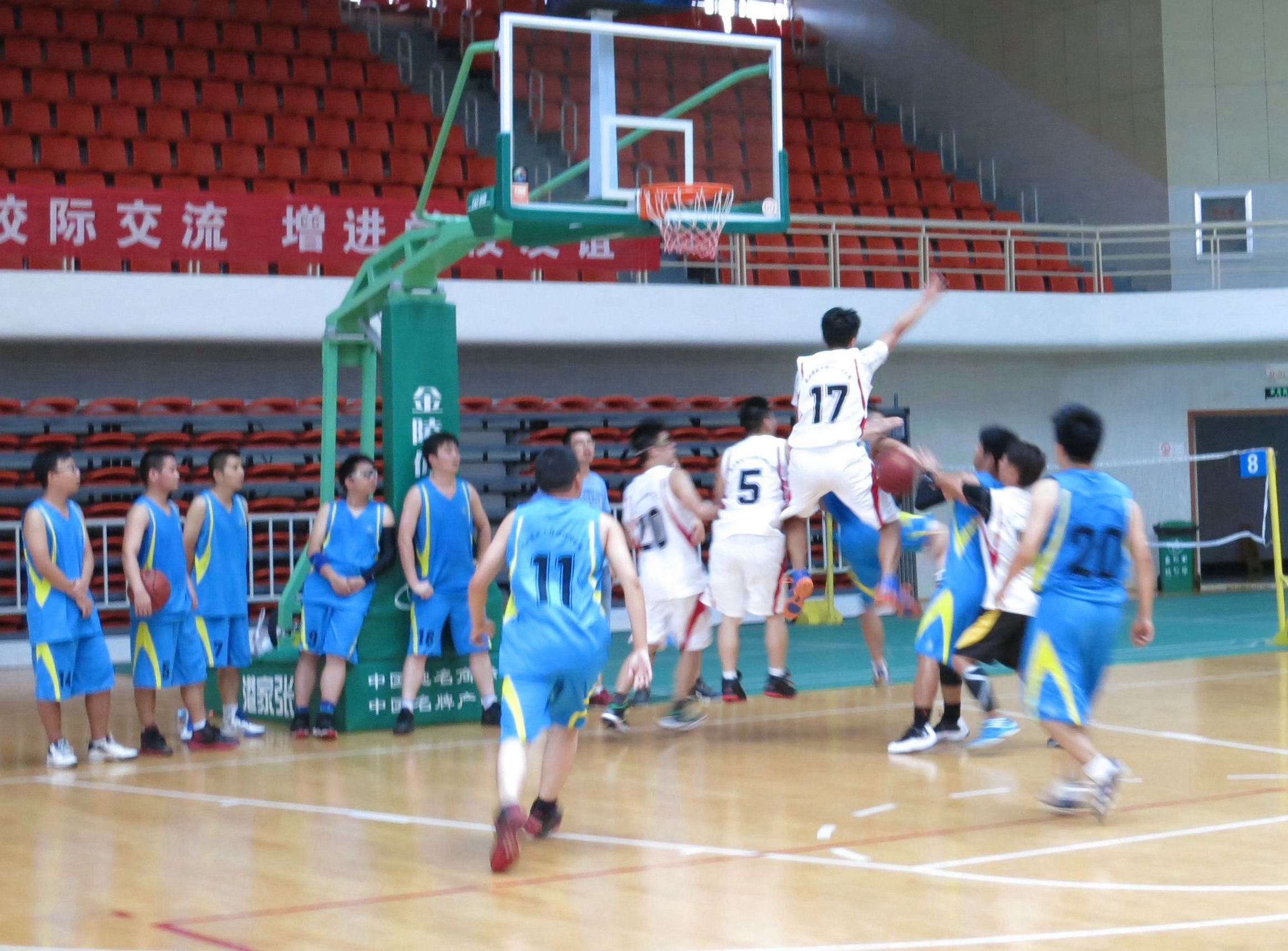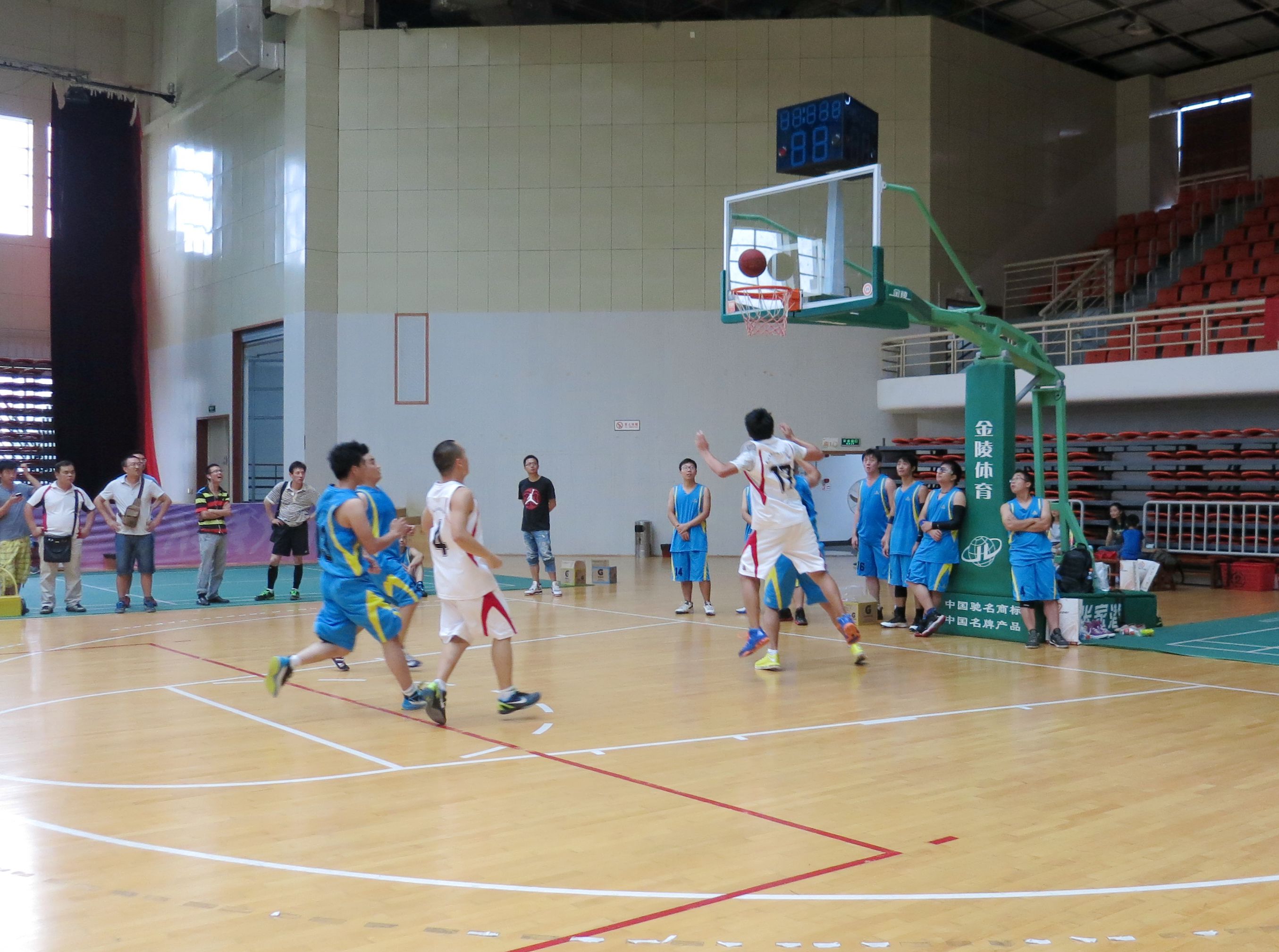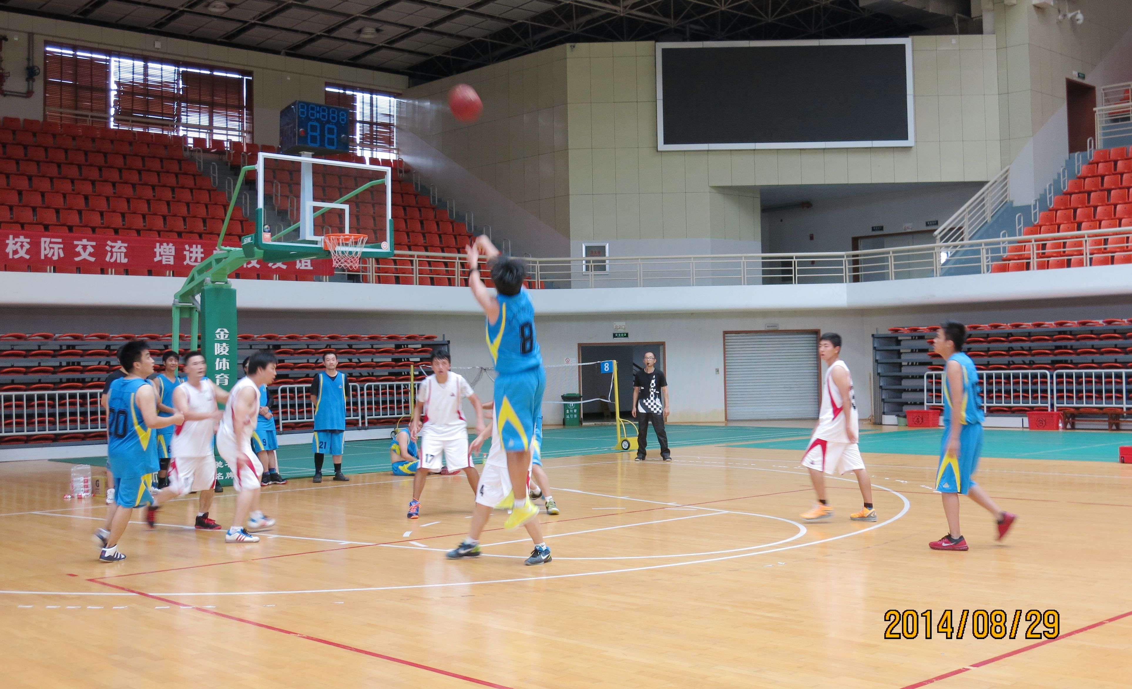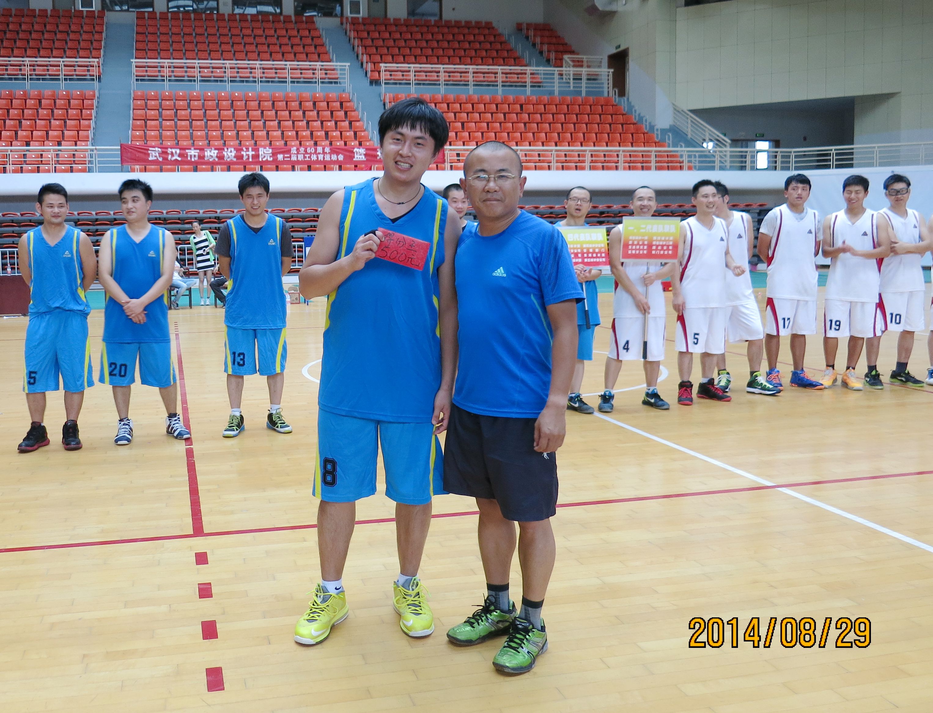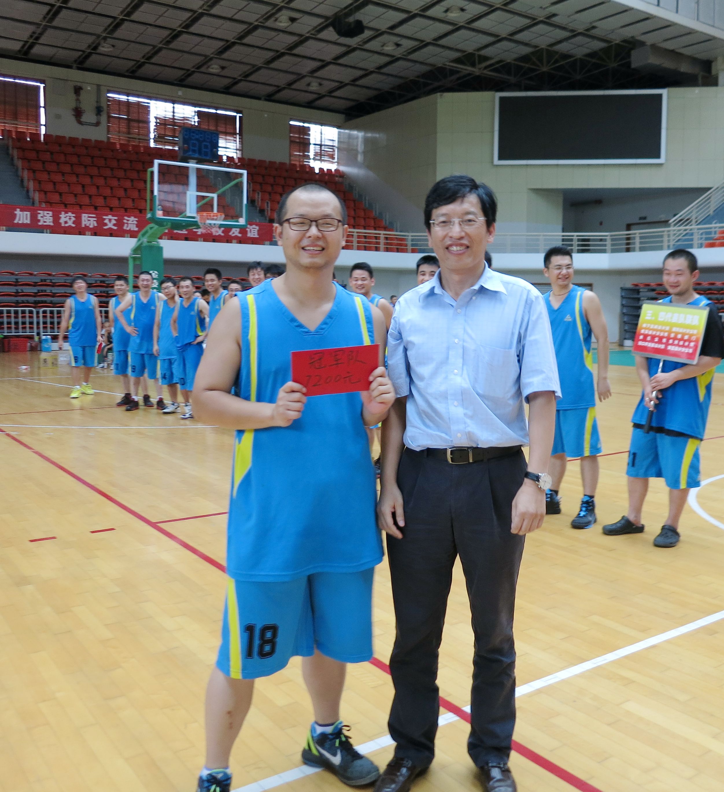??? 來自公司的八個分工會經(jīng)過抽簽,組成了兩支隊伍參加比賽,由于雙方實力相當,這場比賽在賽前就被認為是一場勢均力敵的比賽。但是,比賽開始后,一個人的出現(xiàn)就迅速打破了場上的均衡,他就是來自藍隊的王龍。他的突破和快攻頻頻得手,很快便為藍隊確立了領(lǐng)先優(yōu)勢。相比于藍隊的個人表演,白隊依靠的則是團隊配合,在克服了開賽之初球隊磨合不夠的困難后,白隊漸漸找到比賽的感覺,打出了多次漂亮的團隊配合,緊緊咬住比分。然而,第三節(jié)將近五分鐘的時間未能得分,還是讓他們?nèi)鄙仝s超比分后勁。隨著裁判的一聲哨響,比賽宣告結(jié)束,最終的比分定格在69:55,藍隊以14分的優(yōu)勢獲得了勝利,王龍更是一人獨得35分,榮膺了本場比賽的得分王。