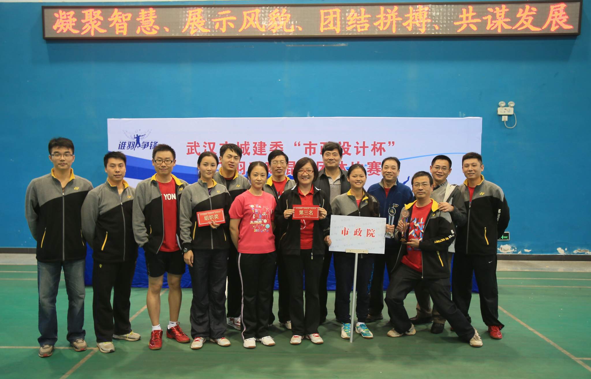 ??? 11月22日,武昌寧友羽毛球館內(nèi)人頭攢動(dòng),熱鬧非常,由武漢市城建委主辦、由公司承辦的“市政設(shè)計(jì)杯”職工羽毛球混合團(tuán)體比賽在這里舉行。比賽開幕式由市城建委副巡視員朱宗信主持,公司黨委書記蔡輝代表承辦單位致辭。