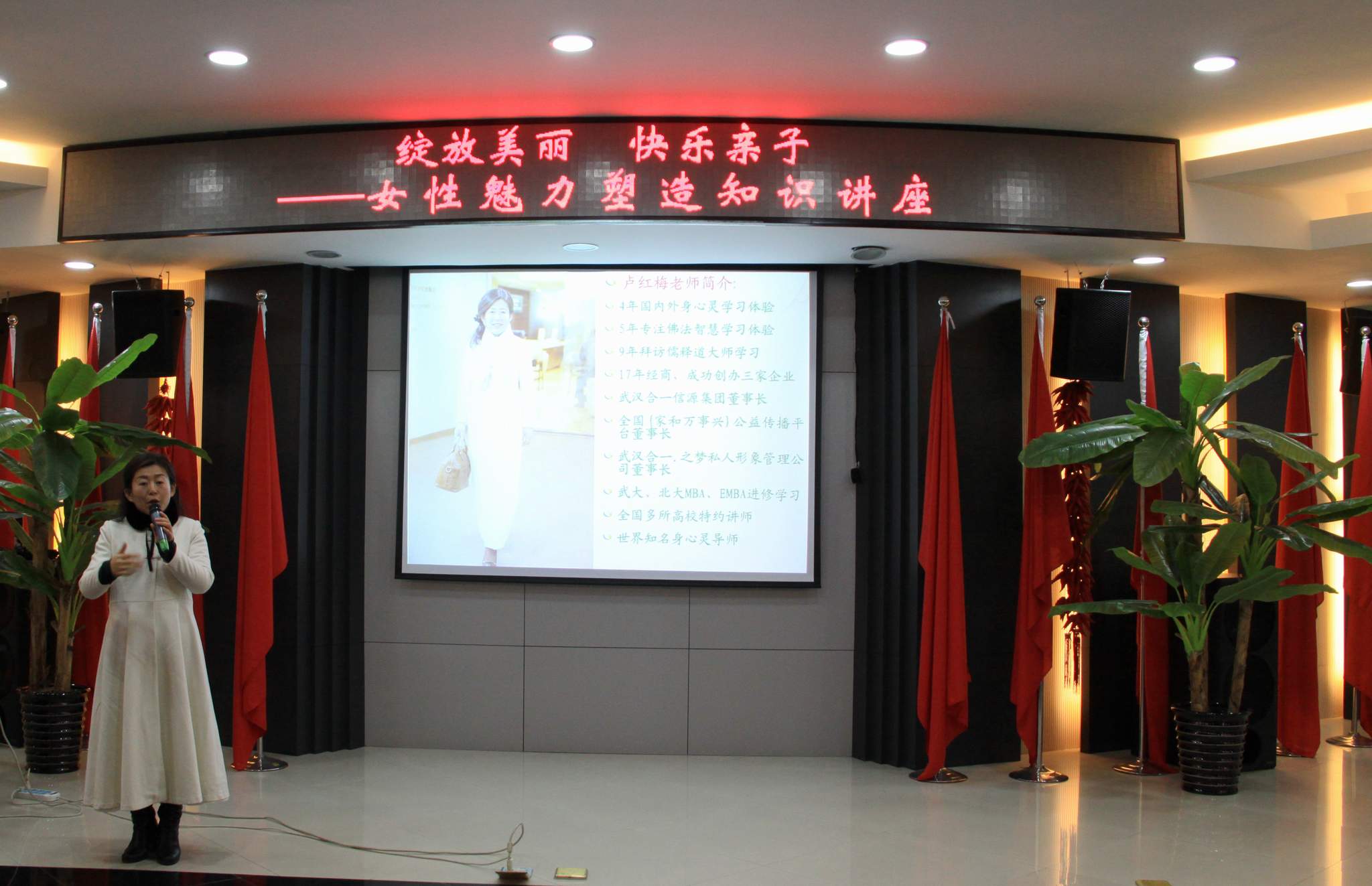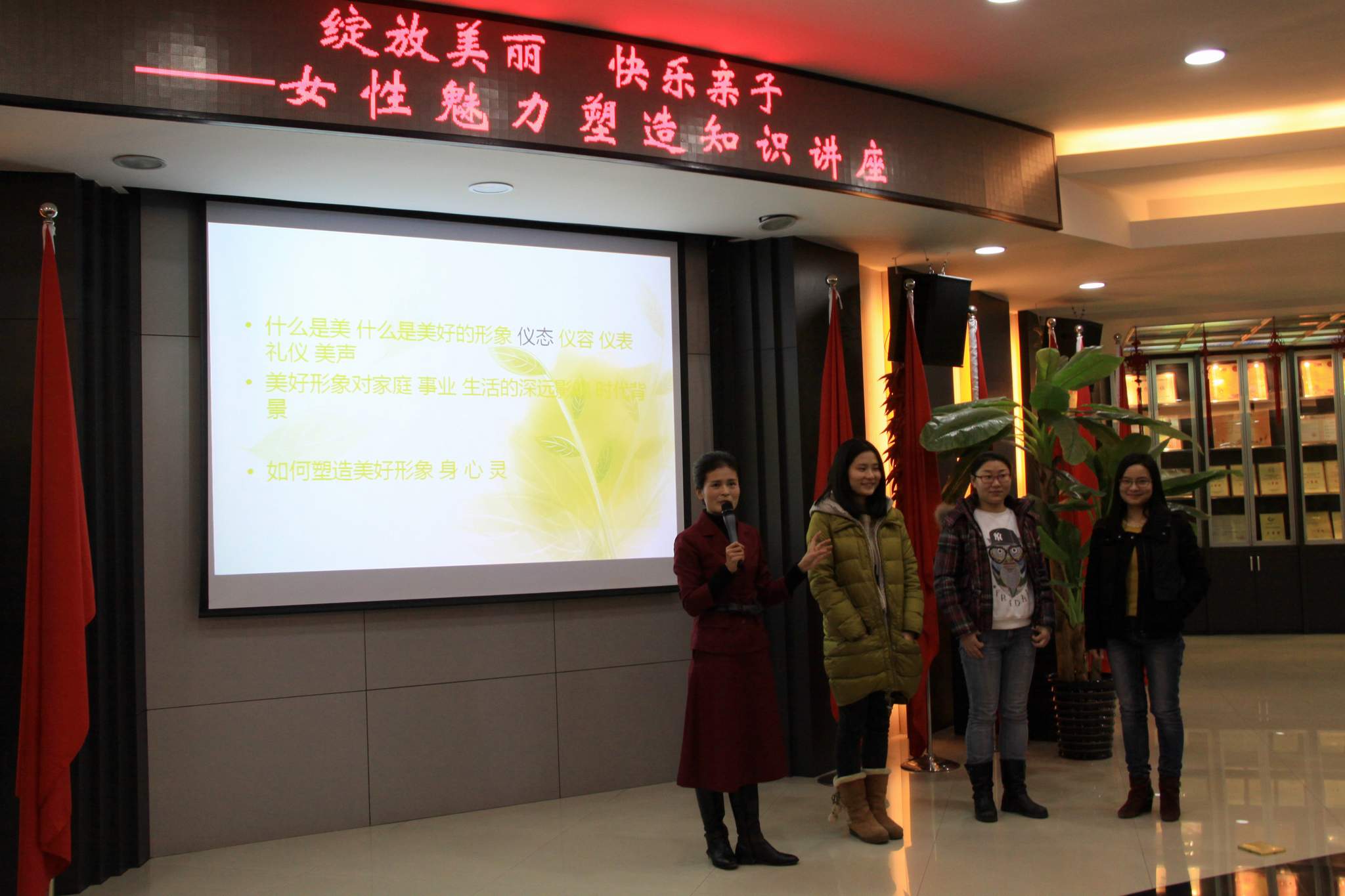 ??? 3月6日,為慶祝“三八”國際婦女節(jié),公司在二樓會議室開展了以“綻放美麗,快樂親子”為主題的女性魅力塑造知識講座,邀請了合一信源集團(tuán)創(chuàng)始人、全國“家和萬事興”公益?zhèn)鞑ブ髦v師盧紅梅女士親臨授課,為公司女員工送上了一份溫馨的節(jié)日禮物,公司主要領(lǐng)導(dǎo)和全體女員工參加了講座。