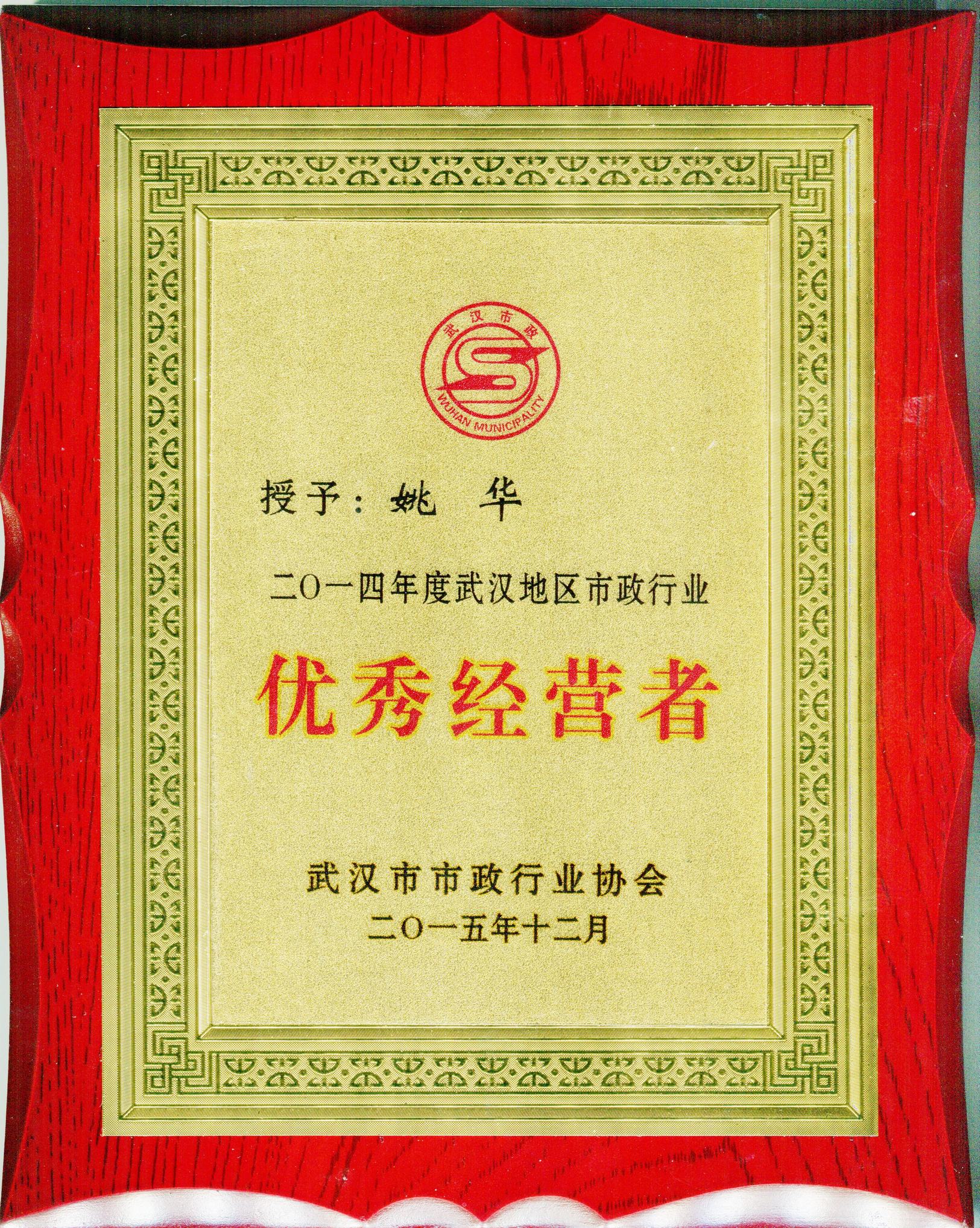 ??? 在2014年度的武漢市市政行業(yè)協(xié)會(huì)榮譽(yù)評(píng)選中,公司榮獲了“武漢地區(qū)市政行業(yè)先進(jìn)企業(yè)”、“AAA信譽(yù)企業(yè)”等榮譽(yù)稱號(hào);總經(jīng)理姚華同志榮獲“優(yōu)秀經(jīng)營(yíng)者”稱號(hào);副總經(jīng)理、總工程師蔣樂榮獲“優(yōu)秀總工程師”稱號(hào);萬(wàn)飛、盛建偉榮獲“優(yōu)秀監(jiān)理工程師”稱號(hào)。