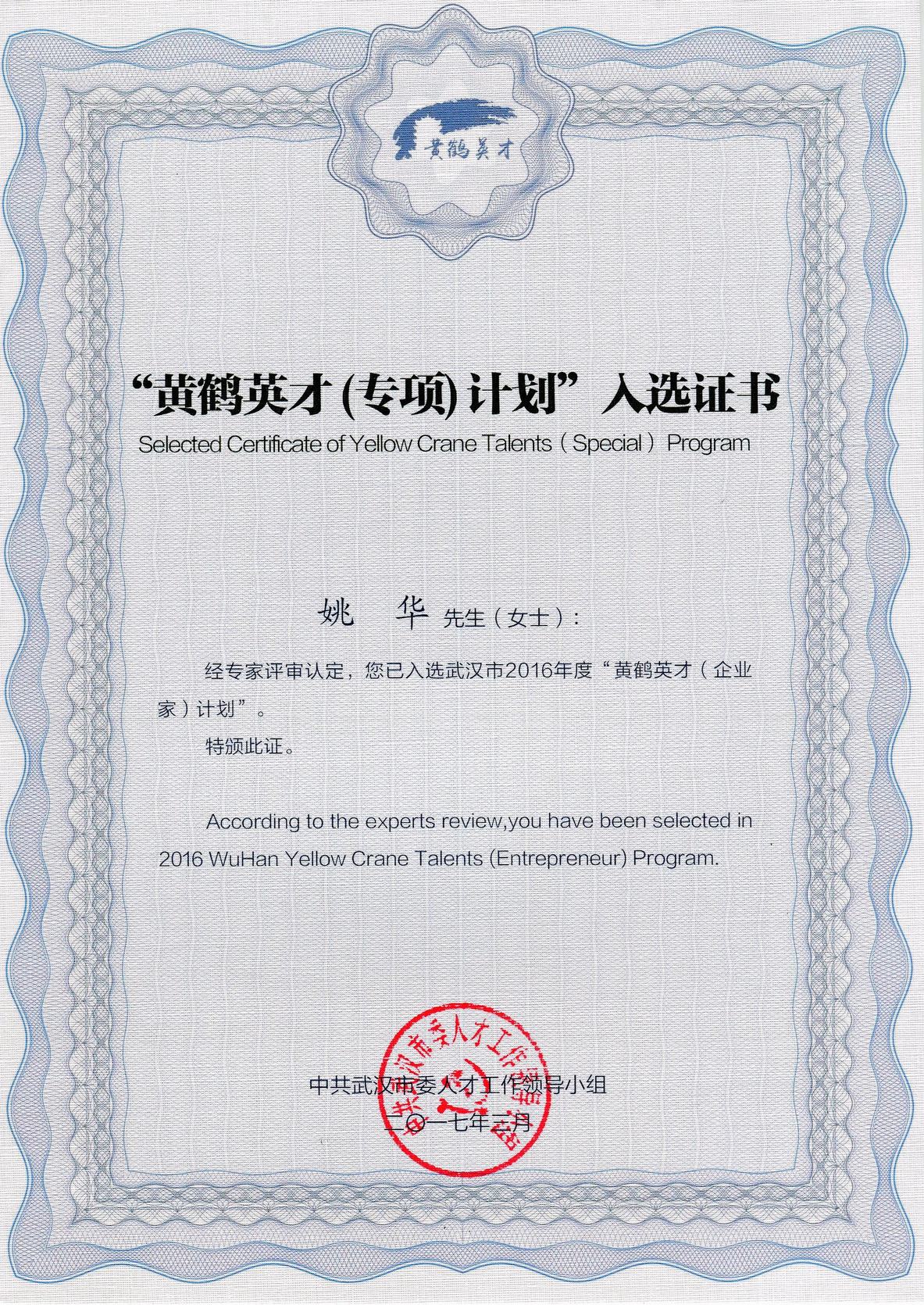 ??? “黃鶴英才(企業(yè)家)計(jì)劃”是為了鼓勵(lì)和表彰具有戰(zhàn)略思維、富于創(chuàng)新精神的企業(yè)領(lǐng)軍人物,姚華同志作為公司總經(jīng)理,善于創(chuàng)造性地開展工作,在他的領(lǐng)導(dǎo)下,公司經(jīng)營業(yè)績連創(chuàng)新高,業(yè)務(wù)類型日趨豐富,市場范圍逐步擴(kuò)大,企業(yè)管理效能穩(wěn)步提升,在企業(yè)管理崗位上做出了突出成績。