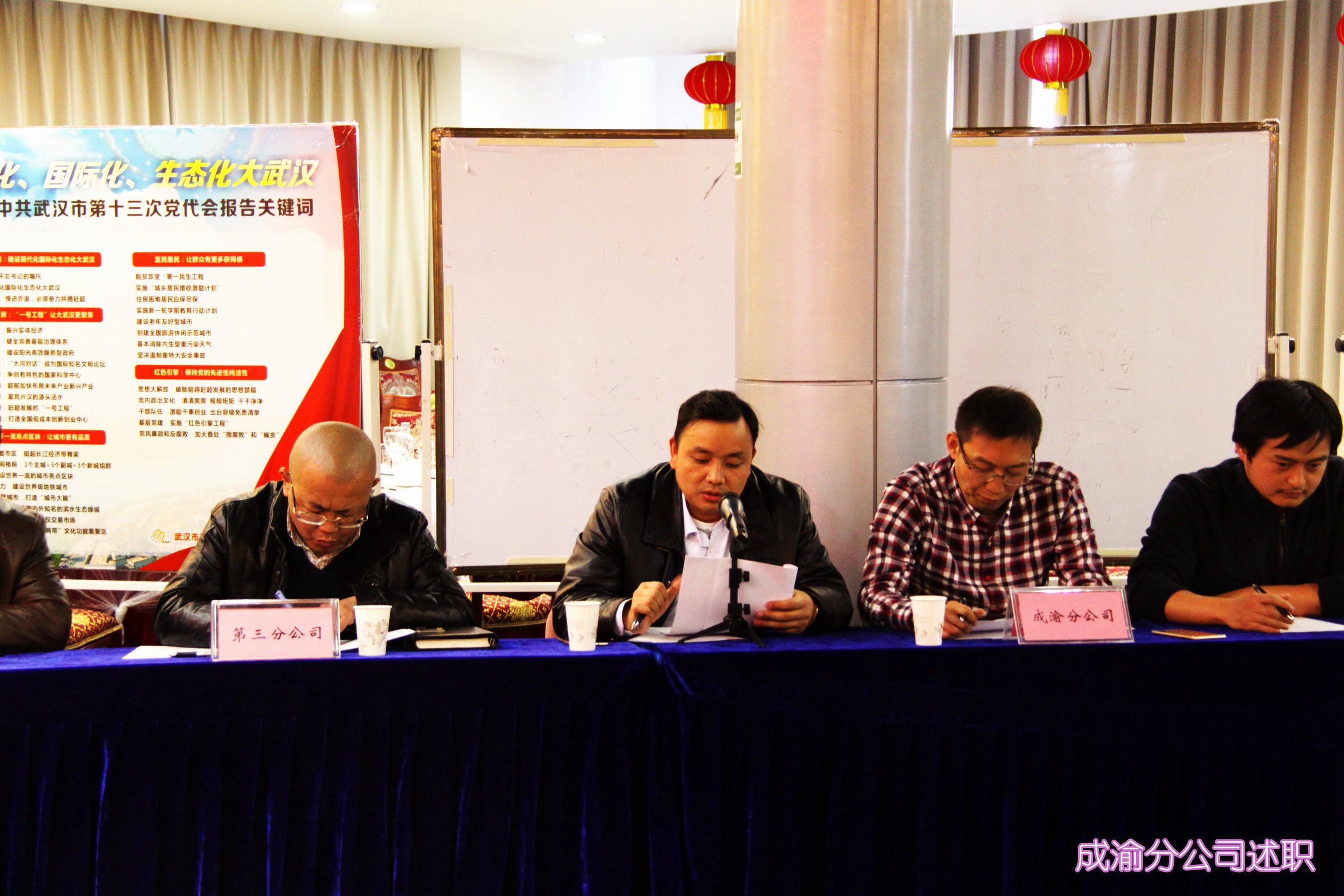 ??? 1月12日下午,公司在二樓會(huì)議室召開(kāi)設(shè)計(jì)分公司2017年度述職座談會(huì),會(huì)議由總經(jīng)理姚華主持,公司領(lǐng)導(dǎo)、總經(jīng)理助理及相關(guān)部門(mén)負(fù)責(zé)人參加了會(huì)議,公司所屬成渝、東莞、南寧以及第三設(shè)計(jì)分公司相關(guān)負(fù)責(zé)人參加了會(huì)議并向大會(huì)述職。