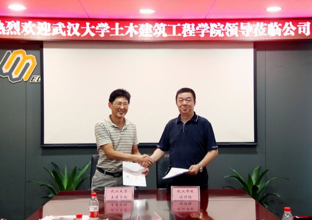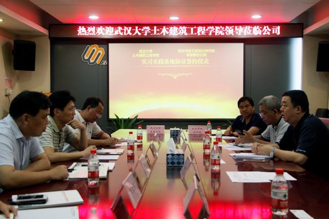 ??? 蔡輝對雷世富一行表示歡迎,并希望雙方在行業(yè)工程項目展示、世界及行業(yè)前沿探索、學生定向培養(yǎng)等方面能有全方位的合作。周俊介紹了公司的基本情況以及武漢大學土木建筑工程學院畢業(yè)生在公司的工作和成長情況,并對武漢大學土木建筑工程學院為公司輸送優(yōu)秀人才表示感謝。